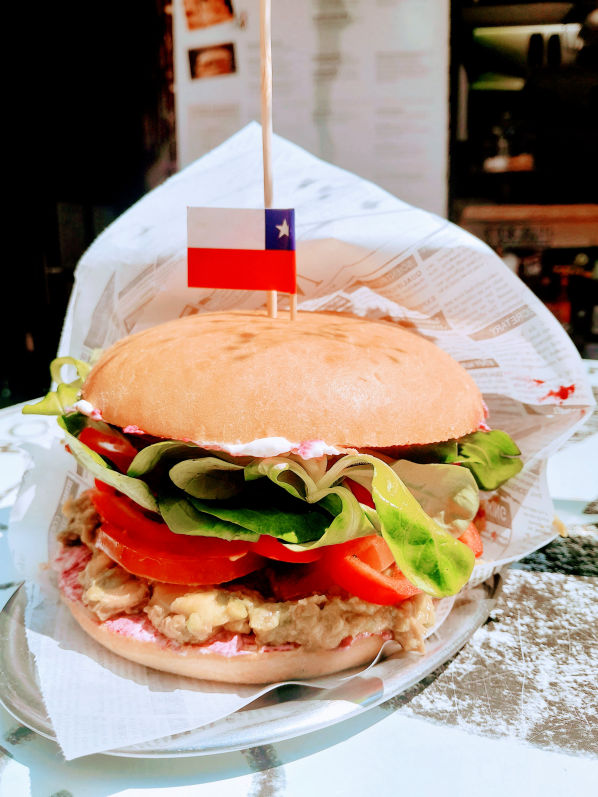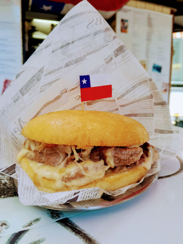 Es un sándwich chileno que nació como resultado de la mezcla entre el ADN de Mónica Bellucci y un futbolista de segunda selección que trabajaba como maestro de cocina en una fuente de soda del centro de Santiago.
