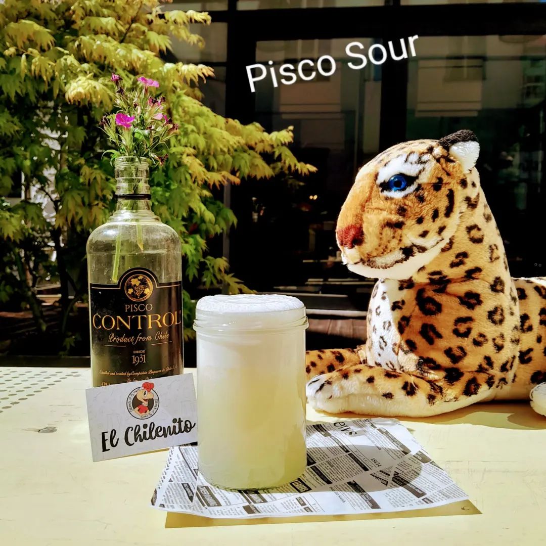 Pisco Sour, el clásico de Chile, preparado con amor, pisco chileno, lima fresca y limón, con un toque de azúcar. Viva Chile Mierda.