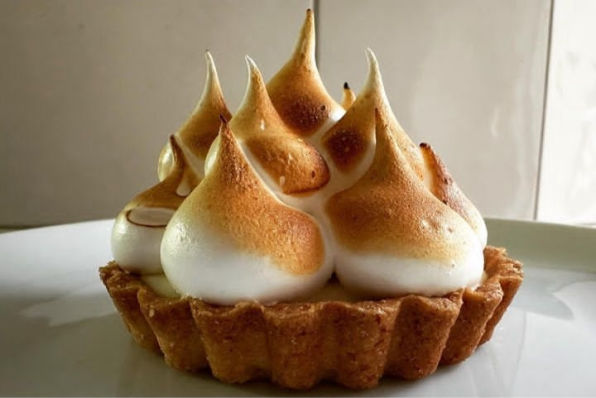 Base de masa quebrada, crema de leche condensada y limón, vainilla y merengue.